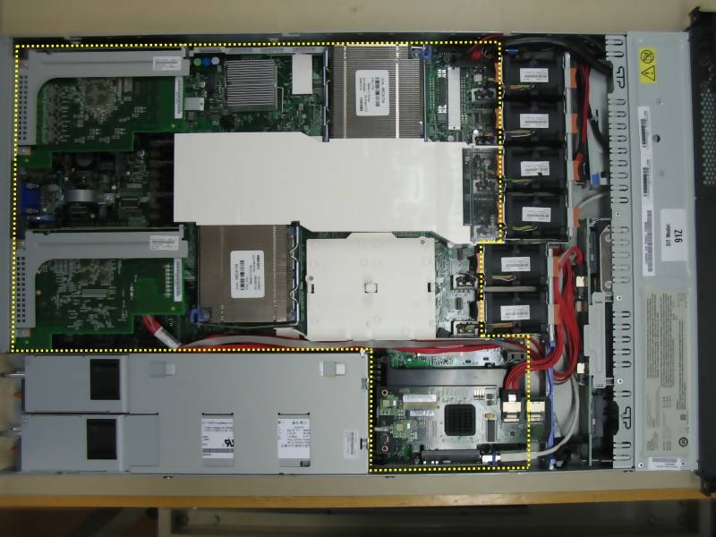 Fig 3. (below) The planar, with 8Gbit FC card (top) and optional SAS card (bottom)