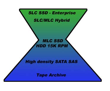 I have to completely disagree with what Hu thinks. I’ve been playing with enterprise SSD devices as long as most. Having the advantage of getting interested in the technology at the right time, and having a boss who could see the value of looking into this upcoming technology. I see the SSD, HDD and tape market as much more of an egg timer shape than a pyramid. Yes so today, a few key players own the market and are charging for their IP, but is the underlying physical media that different from what we have as a commodity today… i.e. disk, or more realistically storage capacity.