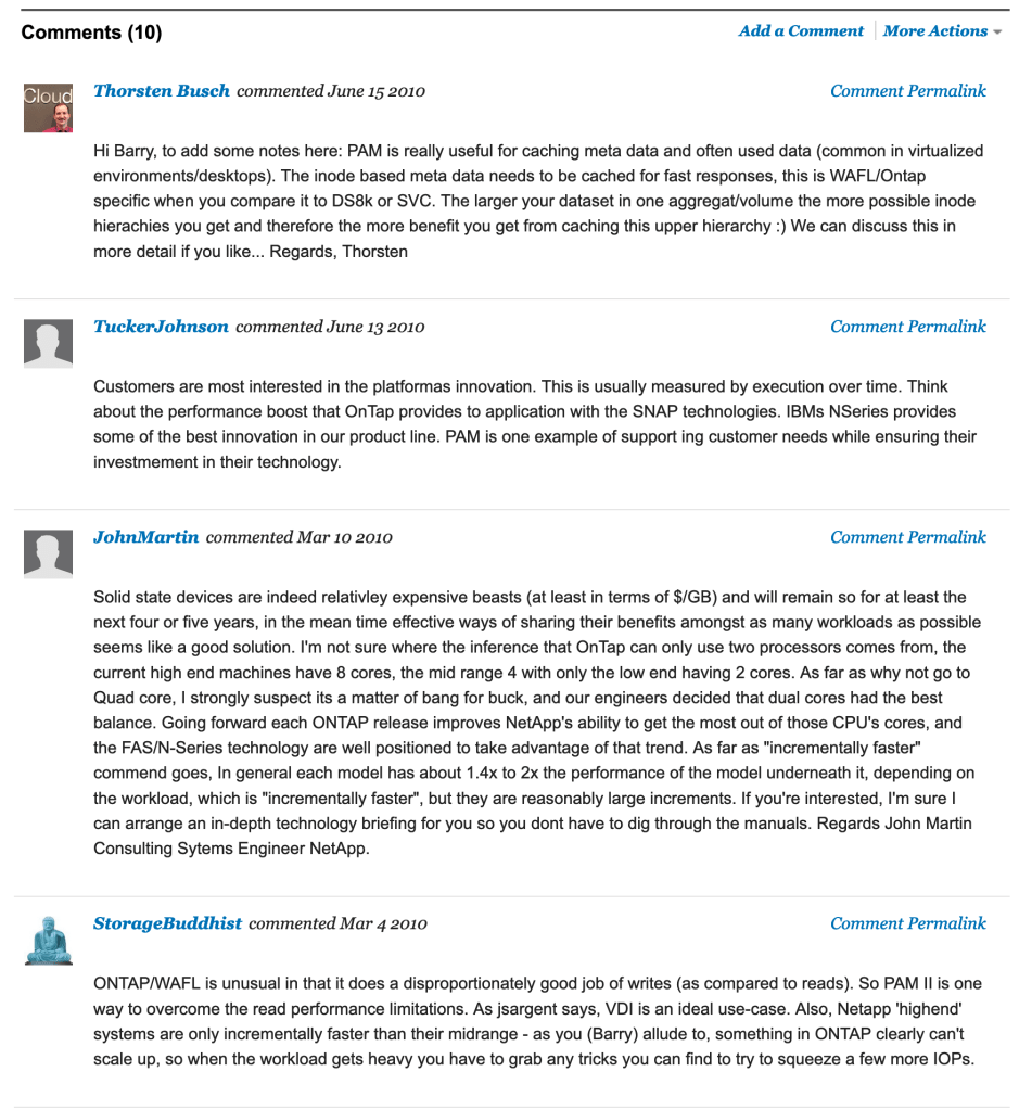 Think of the situation where you have to read some data into main memory to then send out via FC or CIFs/NFS etc and then copy this data into the PAM. So takes twice the bandwidth of just doing a single read. Now in a case where you don’t read that data again for a while, the data will be discarded from the PAM without a hit. So all you are actually doing is HALVING the CPU data bandwidth with no gain – hardly a Performance Acceleration Module – looks more like a performance degredation module in this workload.