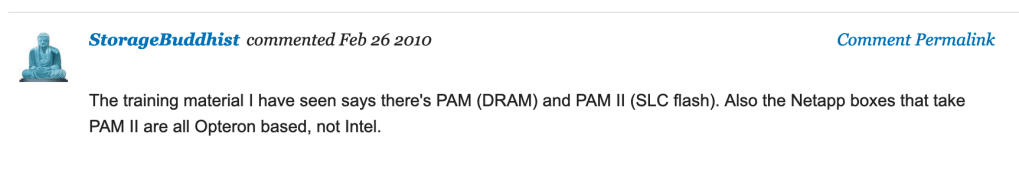 I had always been lead to believe the PAM (Performance Acceleration Module) was flash based, but when I did some googling this week, I was suprised to find its basically a PCIe card with some DDR modules on it. No flash in sight.