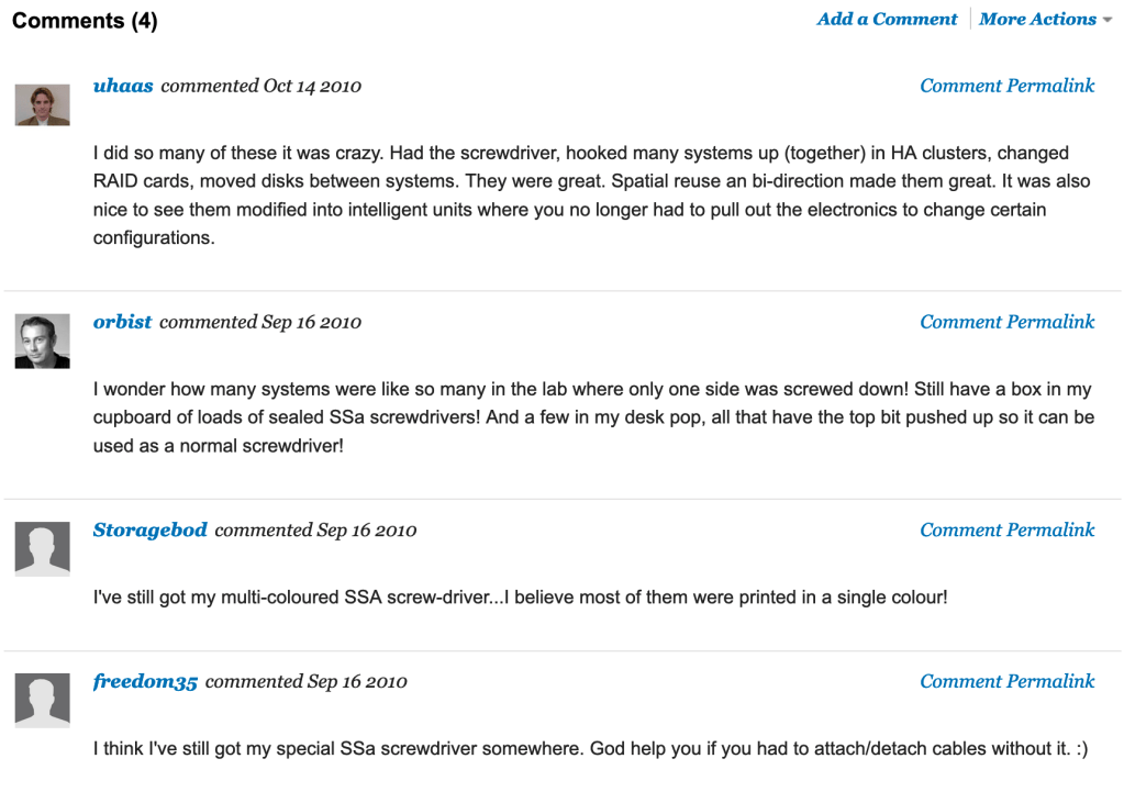 SSa as a storage solution had about a 95% attach rate to the then System P (RS/6000) servers, many of them having SSa inbuilt to the server, and sold more than 10PB of SSa disk – doesn’t sound a lot, but given the average drive size was 9GB, thats over 1,000,000 SSa disks…