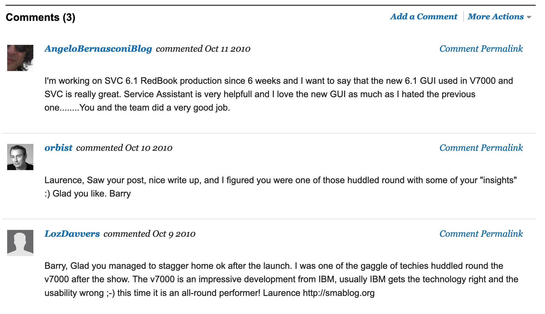 Some great posts out in the blogosphere – from non IBMers too – getting Martin and Stephen posting positive articles about IBM storage is almost better than expected – and Martin, thanks for the reference, but there are many many more clever people than me in the Hursley Storage team, and every single one of the 150+ team, not to mention the hundreds more worldwide that have made this product a reality deserve more credit than me – I’m just a little voice for those people and I know how hard the core team have been working for the last two years – a round of applause to all of you.