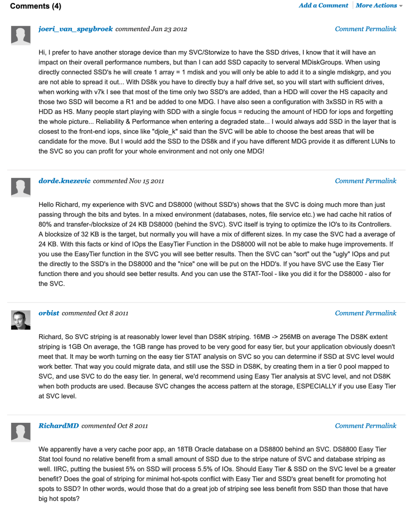 Writing this I think I maybe painting NAND in a bad light, but I’m just trying to explain where and when NAND works, but most importantlythe kind of things to look out for. Ultimately it doesn’t suprise me that in the tests performed by CSCS didn’t meet the vendors claims, as they didn’t fit the tests into the small window that showed the device at its best. IBM today provides SLC based SSD drives in SVC, eMLC drives in Storwize V7000 and DS8000 and Easy Tier automated migration across all those products. Our Power and X Systems can be configured with locally attached PCIe cards and any performance numbers we provide, benchmark or estimate are always based on the real life, sustained performance of the devices.