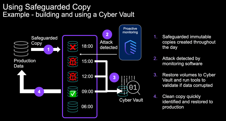 CyberVault is around the processes you put in place to recover, making use of the Safeguarded copies, an isolated safe compute environment and the validation techniques you can use to ensure copies are not infected, or at least are usable pre encryption event. As I said, a whole topic in itself and I will cover more in the new year.