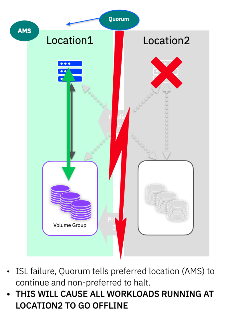 This is the reason it is imperative to ensure the AMS is allocated to the same location as where you are running the applications using volumes in this partition. If you get this wrong, the AMS (assuming it is available) will always win the quorum tie-break, then you could lose access if the application is actually running at the non-AMS location.